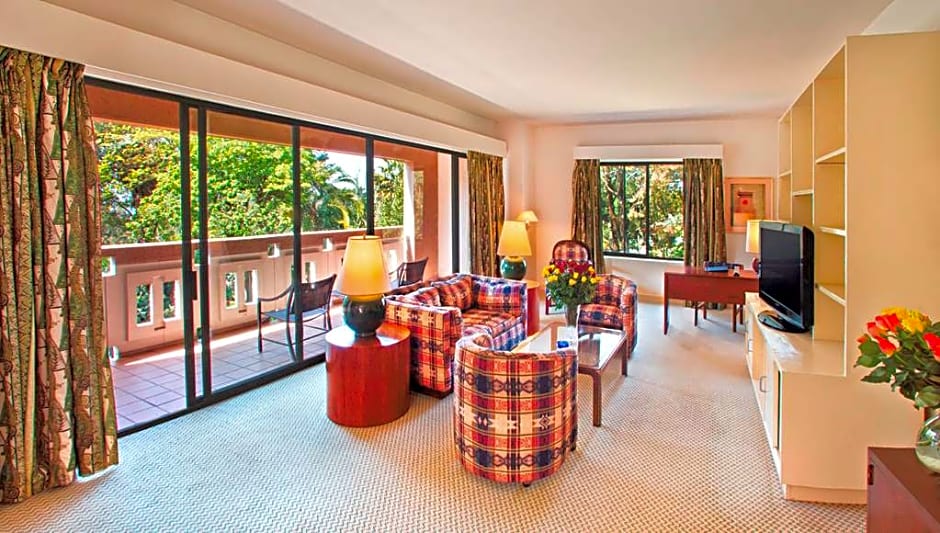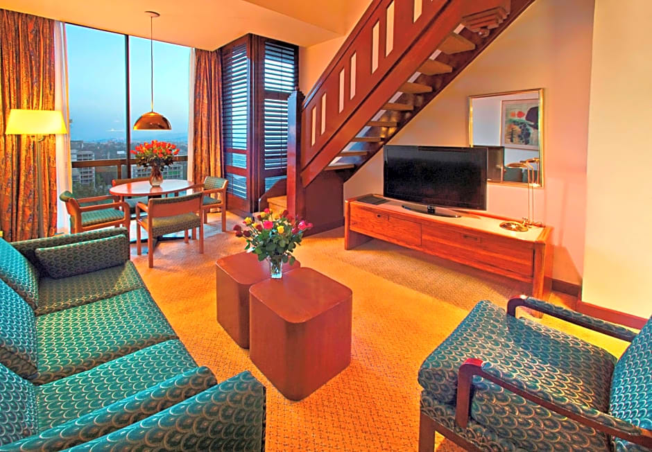 74 sqm/796 sq ft, top floor suite with balcony, desk and WiFi, separate living area Enjoy mountain or city views from the balcony of this spacious top-floor suite featuring king-size bed, living area, refrigerator and a second bathroom. Work at the desk with adjustable lamp and WiFi (fee applies). Curl up on the sofa, watch TV and sample a cool drink from the mini-bar. Refresh and relax in the one of the bathrooms with amenities including bathrobe. Additional touches include a daily newspaper, mineral water, chocolates, flowers and fruit.